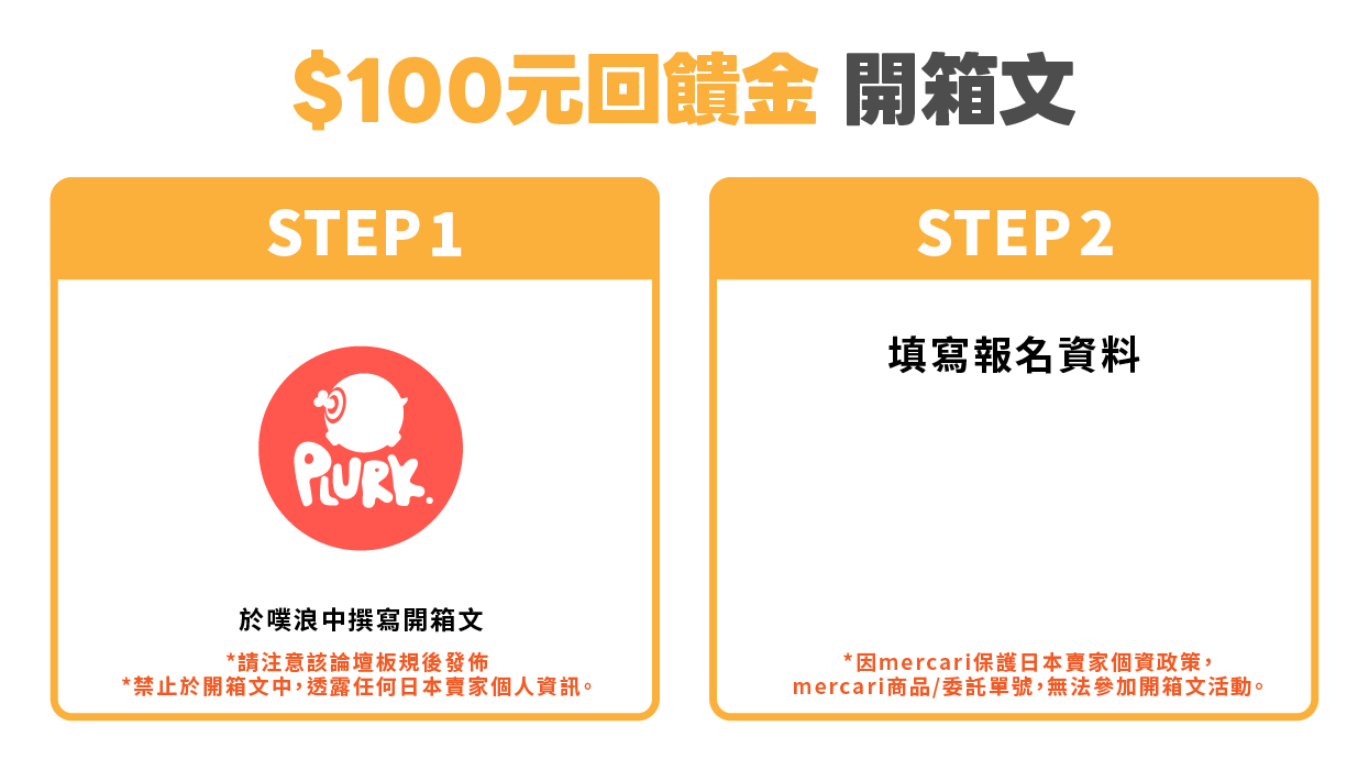 因mercari保護日本賣家個資政策,mercari平台之代購商品/委託單號,無法參加開箱文活動。