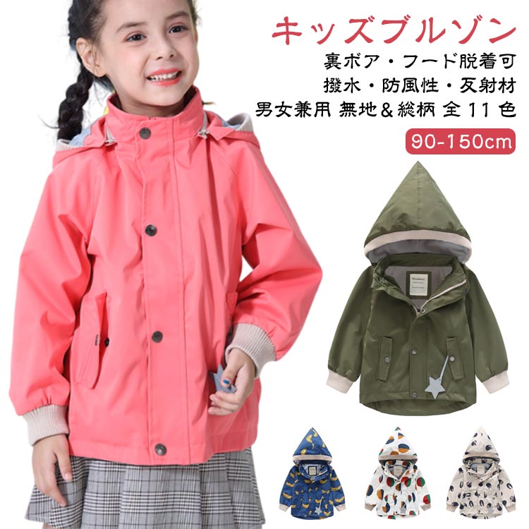子供服 ジャンパー 裏ボア フード脱着可 裏起毛 キッズ 上着 撥水 防寒 子供 トップス 男の子 女の子 ブルゾン ジュニア ベビー アウター アウトドアウェア ジャケット パーカー 秋冬 厚手 あったか 暖かい 保温 防寒着 アウトドア