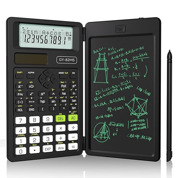 関数電卓 240関数・機能 電卓付き電子メモパッド 統計計算・数学自然表示 2in1 2桁表示 数学電卓 ソーラー充電可 計算 学生 受験 科学 数学 建築現場 物理 大学用 82MS 日本語説明書付き ブラック