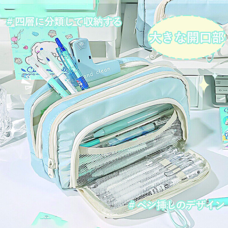 ペンケース 筆箱 大容量 多機能 仕切り タテヨコ 筆記用具 筆入れ ふでばこ 使いやすい 両面メッシュポケット 2WAY 便利 オシャレ シンプル 両面開き設計 収納 新入