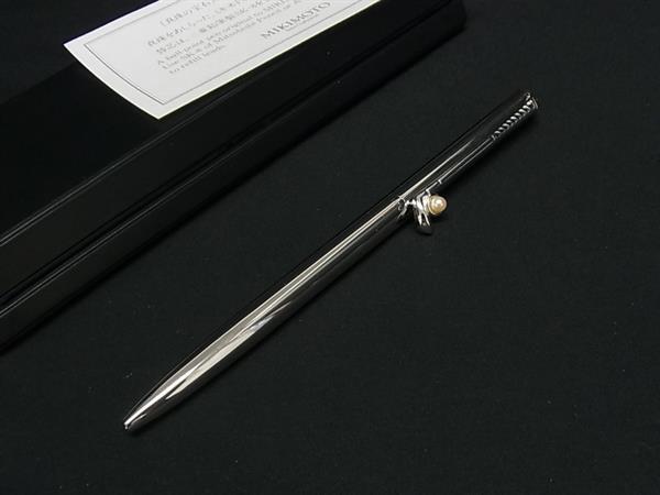 ■新品同様■ MIKIMOTO ミキモト 本真珠 アコヤ真珠 パール 約3mm ボールペン 筆記用具 文房具 ステーショナリー シルバー系 DI2327