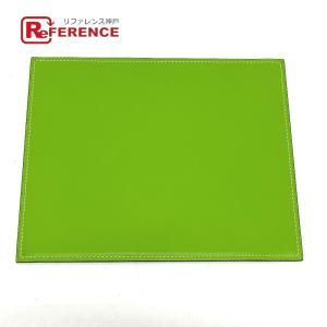 HERMES エルメス リバーシブル マウスパッド バイカラー PC パソコン インテリア 雑貨 レザー E□刻 アップルグリーン【中古】未使用