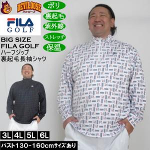 大きいサイズ メンズ FILA GOLF ハーフジップ 裏起毛 長袖シャツ 保温 刺繍 ストレッチ 紫外線カット(メーカー取寄)フィラゴルフ 3L 4L 5L 6L
