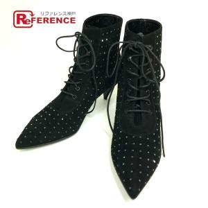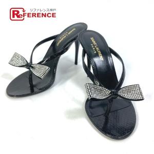 新品同様 SAINT LAURENT PARIS サンローランパリ 606419 リボン りぼん スワロフスキー 靴 ヒール ミュール サンダル ブラック【中古】