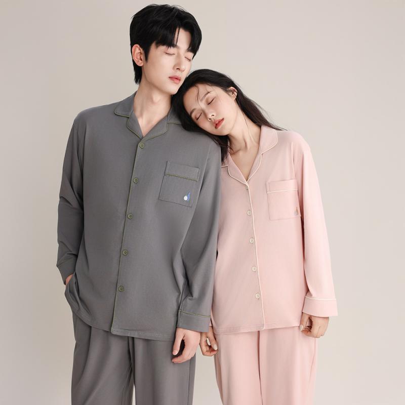 パジャマ レディース メンズ 春秋 長袖 綿 上下セット カップル 抗菌 寝巻き ルームウェア 部屋着 普段使い ピンク系 ブルー系 グレー