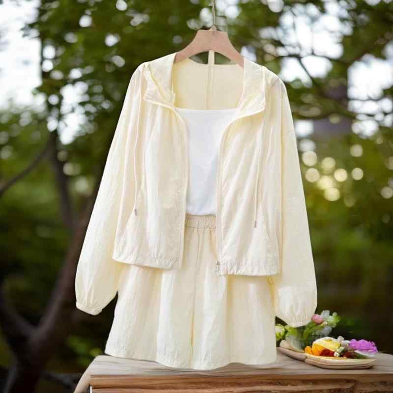 セットアップ レディース 春夏 スポーツウェア 2点セット:防風 撥水 ジャケット ショートパンツ カジュアル スポーティー 旅行 アウトドア 普段使い 小柄な女性にもおすすめ