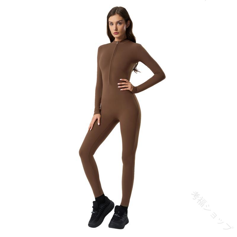ヨガウェア レディース スポーツウェア シームレス 長袖 ロングパンツ オールインワン 無地 ホワイト ブラック グレー ブラウン ネイビー カーキ 春夏 秋冬 ランニング フィットネス