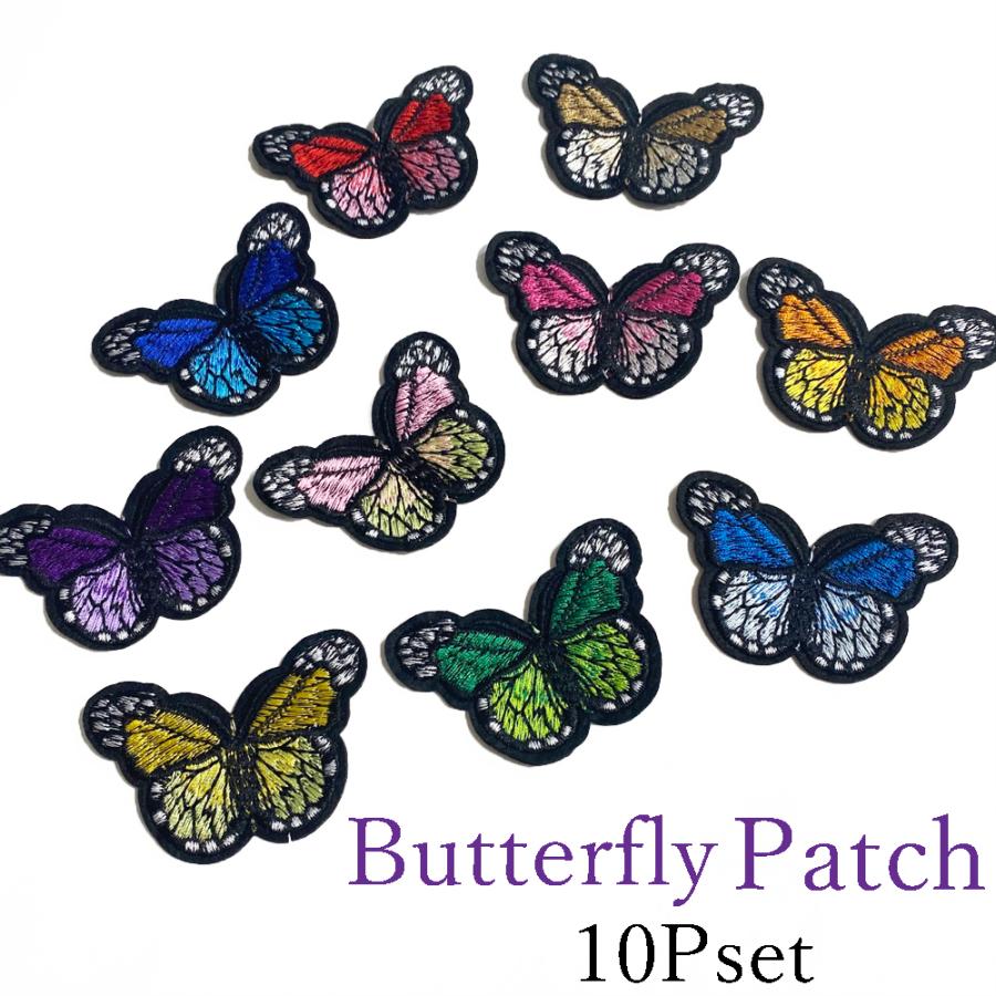 バタフライワッペン10個セット 蝶アップリケ10色セット