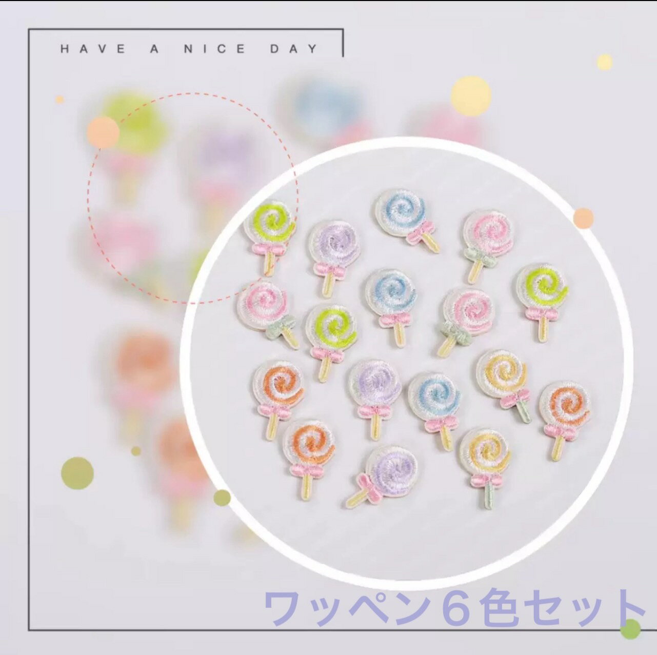 キャンディワッペン 6色セットアップリケ 粘着シール 刺繍 キャンディー キャンデー あめ 飴 アメ ロリポップ