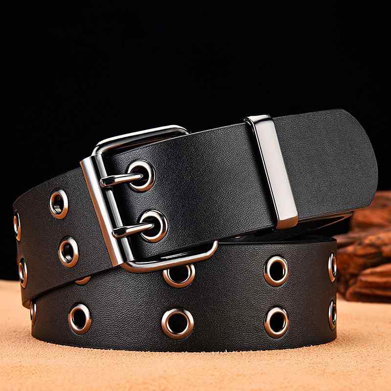 スタッズ ベルト レザー 牛革 メンズ レディース ユニバーサル ダブルピンバックル メタル ヒップホップ パンク ロック スカル