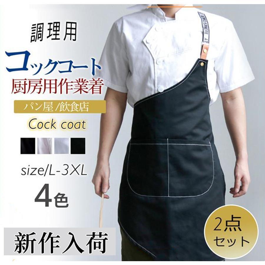 コックコート コックシャツ 2点セット エプロン 半袖 コック服 調理用 メンズ トップス 制服 パン屋 ケーキ屋 コックウェア レディース 飲食店
