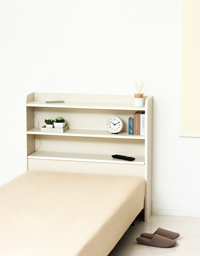 後付けヘッドボード ホワイト 日本製 シングル 収納ラック 巾木よけ 白家具 おしゃれ 北欧 カントリー 国産 ヘッドボード単品