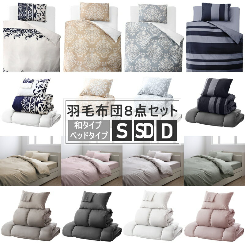 3年保証 羽根布団セット シングルサイズ 羽根布団8点セット (ベッドタイプ&和タイプ:シングル) セット布団 布団セット 組布団 寝具セット 掛け布団 枕 カバー 収納ケース ふとんセット 来客用 客用布団 一人暮らし オールシーズン 寝心地 あったかい 送料無料