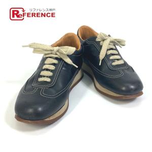 HERMES エルメス メッシュ 靴 紐 スニーカー メッシュ/レザー ブラック レディース【中古】