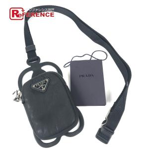 PRADA プラダ トライアングルロゴ 三角ロゴ プレート スマホポーチ iphoneケース ネックストラップ付 携帯ケース ブラック【中古】