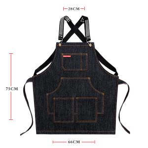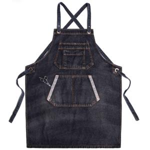 デニムエプロン 前掛け 胸当て 首掛け式 着脱簡単 美容師 作業用 料理教室 フリーサイズ 調節可能 実用的 ファッション