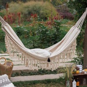 北欧ボヘミア ハンモック 手作り フリンジ キャンプ 室内 室外 撮影道具 高耐久 ズック 持ち運びやすい ピクニック 折りたたみ 2人用 耐荷重300kg