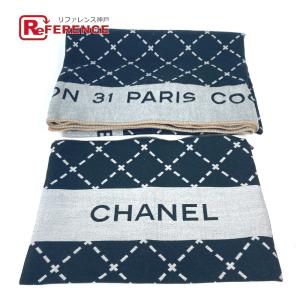 美品 CHANEL シャネル ロゴ ポーチ付き インテリア ひざかけ 大判 ブランケット ブラック レディース【中古】