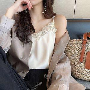 キャミソール レースブラウス サテン ホワイト ブラック インナー お出掛け エレガンス 大人【クリックポストで送料無料】20代30代40代50代60代