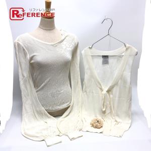 CHANEL シャネル P25409 カメリア リボン メッシュニット ノースリーブニット アンサンブル ビスコース オフホワイト レディース【中古】