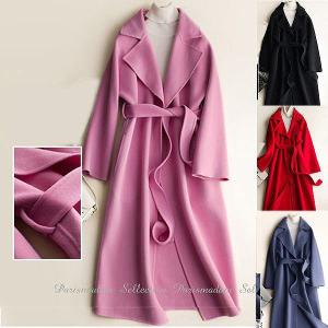 ウール100%上品ロングコート リバーコート ダブルフェイスコート ピンク 一枚仕立て 大人 冬 防寒送料無料 S M L ほっそり効果大 20代30代40代