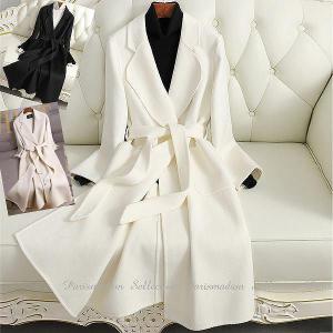 ウール100%リバーコート ウール ロングコート ダブルフェイスコート 一枚仕立て ホワイト ブラック 大人 送料無料 通勤通学 20代30代40代50代60代