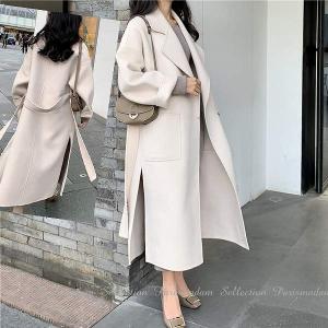 カシミヤ混上品ウールロングコート ウール リバーコート ダブルフェイスコート 一枚仕立て ベージュ キャメル 大人 送料無料 在庫限り