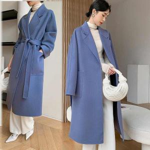 上品ロングコート ウール リバーコート ダブルフェイスコート 一枚仕立て ブルー XS〜XXL 上品 大人 送料無料