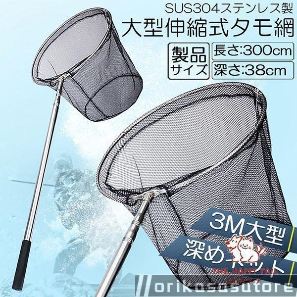 タモ網 玉網 タモ網 ランディングネット伸縮式 すくい網 丸形網 折りたたみ式 調節可能 軽量 釣り用品 漁具 淡水 海水適用 全魚種対応 シルバー 長さ3M
