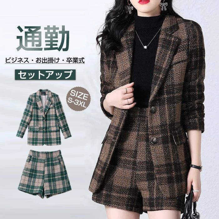 セットアップ ジャケット 長袖 パンツスーツ 短パンツ 春秋 秋冬 Vネック パンツドレス レディース 無地 女の子 結婚式 卒業式 入