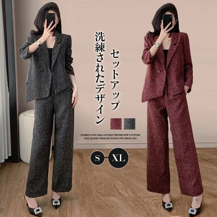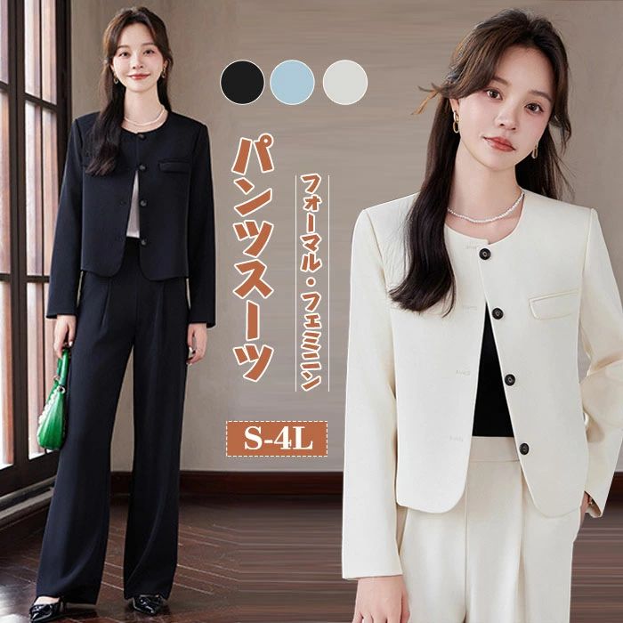 セットアップ ジャケット 長袖 パンツスーツ ロングパンツ 春秋 秋冬 パンツドレス レディース 無地 女の子 結婚式 卒業式 入