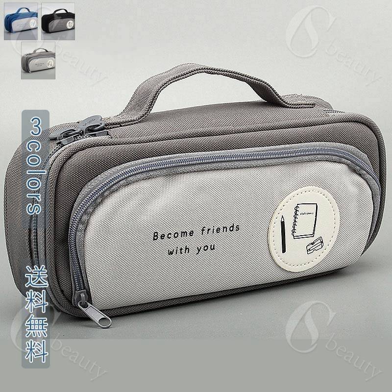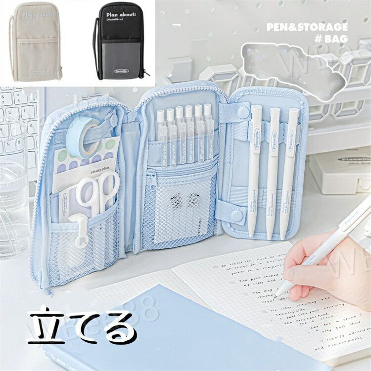 ペンケース ペン袋 立てる 収納便利 カード入れ 仕切り付 ファスナー ボタン デザイン 撥水性 手提げ 筆箱 大容量 多機能 無地 新