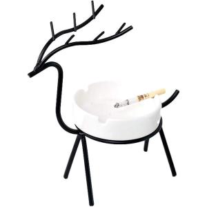 シカ 灰皿 北欧 おしゃれ インテリア 雑貨 小物 入れ 卓上 デスク 吸殻 喫煙具 室内 屋外 オフィス 装飾 大容量 (ブラック)