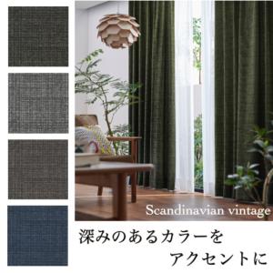 カーテン 洗濯OK 形態安定加工付き 非遮光 北欧 ヴィンテージ グリーン グレー ブラウン ネイビー 幅100×丈100〜150 送料無料
