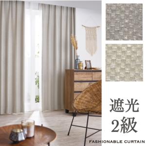 カーテン 遮光2級 洗濯OK 形態安定加工付き 市松模様 BOHO ナチュラル 幅100×丈100〜150 送料無料