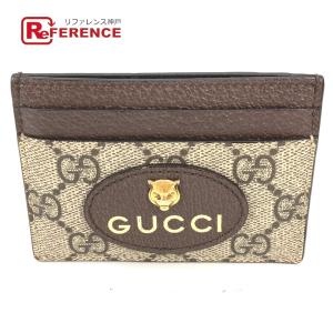美品 GUCCI グッチ 597557 ネオ ヴィンテージ パスケース 名刺入れ GGスプリーム キャットヘッド 猫 カードケース ブラウン【中古】