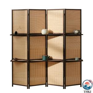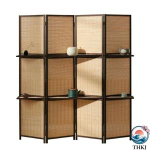 衝立 和風 パーテーション 部屋 間仕切り 4連 天然木 仕切り 高さ150cm/170cm/180cm 折りたたみ 収納棚付き 丈夫 ついたて (オフィス/会議室/飲食店/学校) コン