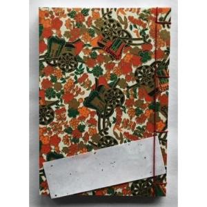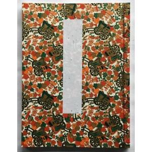 罫線入り和綴じ帖 A6判(縦書き5行罫線・奉書紙)友禅和紙 御所車