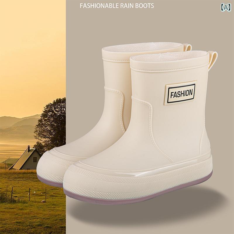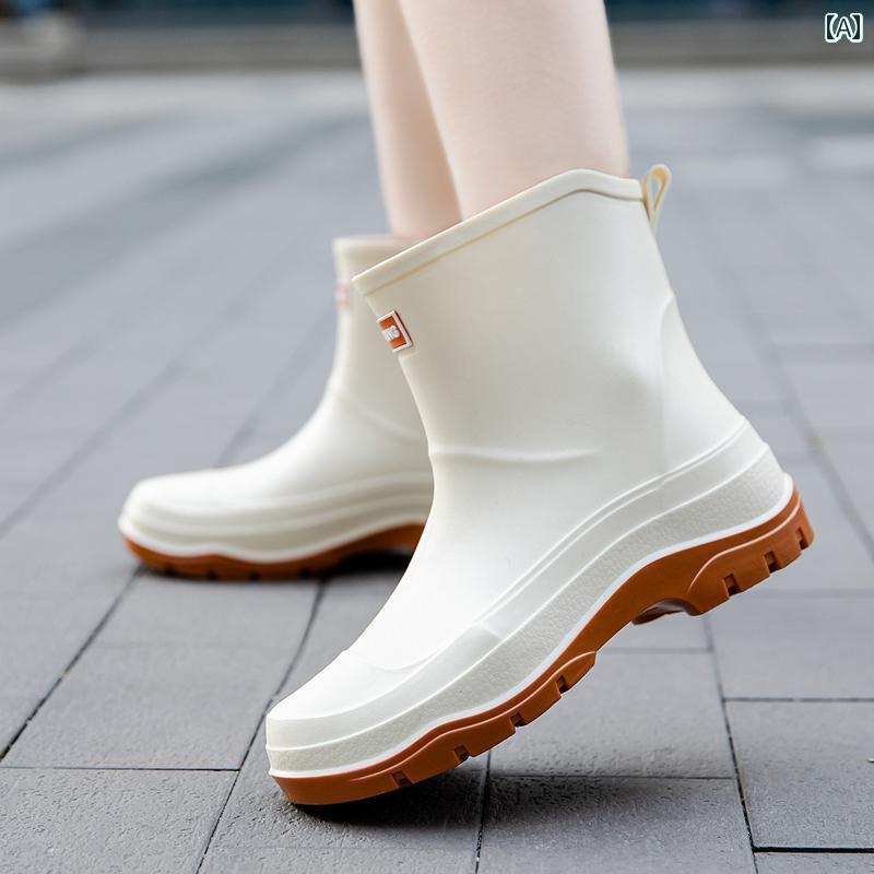 履きやすい 長靴 おしゃれ 和風 レインブーツ レディース ファッション ショート チューブ キッチンワーク 滑り止め ゴム 靴 大人用 アウトドアウェア ベルベット ウォーター シューズ