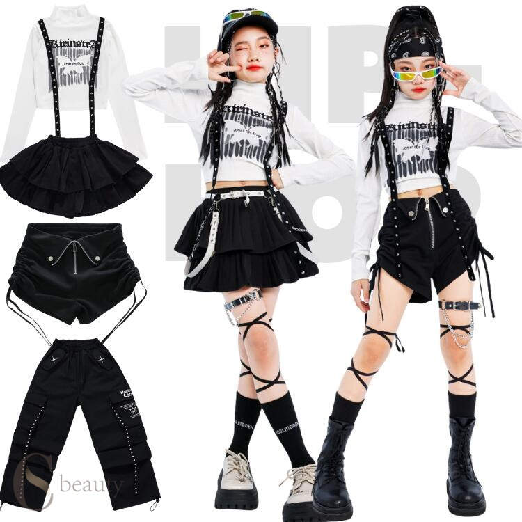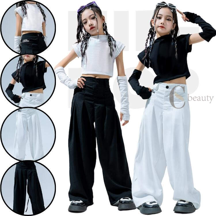 セットアップ キッズダンス へそ出し レディース レッグウォーマー パンツ トップス スカート かっこいい ホワイト 白 ブラック 黒 蝶々 ジャズダンス キッズ 子供 おしゃれ 韓国風 ヒップホップ かっこいい ステージ衣装 ダンス衣装 ダンスウェア 応援団 演出服 HIPHOP