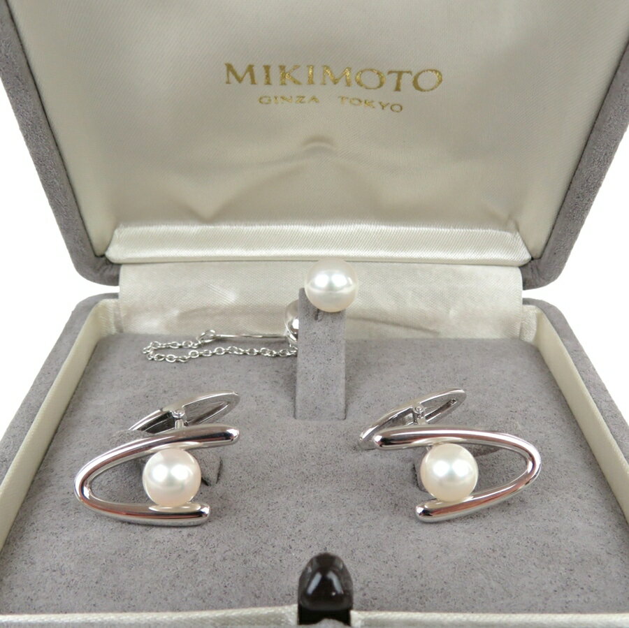 【中古】正規品 MIKIMOTO ミキモト タイタック アコヤ真珠 8.5mm カフスボタン カフリンクス カフス パール 7mm シルバー ケース付き 10.6g【送料無料】