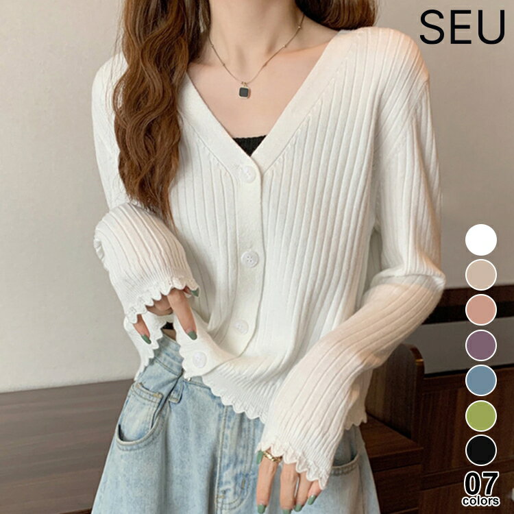 30%OFFクーポン配布中■レディース リブニット Vネック トップス カーディガン ニットカーディガン ニット セーター 軽量 羽織り リブニット フリル きれいめカジュアル 長袖 オフィスカジュアル 春 秋 冬 学生 通勤通学 日焼け対策 冷房対策 OL SEU seu26nt1061
