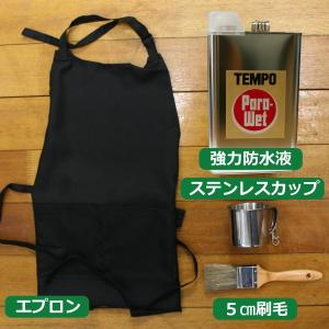TEMPO Para Wet(パラウエット)3.5リットル 4点セット テント用の強力防水液に刷毛とステンレスカップとエプロンが付属の防水・匠セット