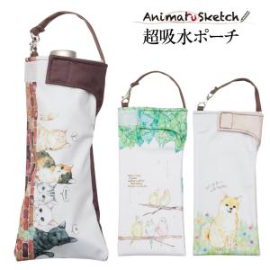 折りたたみ傘 ケース 吸水 かわいい 手提げ付き 吸水ポーチ くるポン アニマルスケッチ ネコ インコ イヌ(3種) 折り畳み傘 ボトル カバー ヒモ付き
