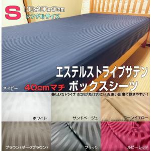 40cmマチ ボックスシーツ シングル 100x195x40/100x200x40/100x210x40cm エステル・ストライプサテン ポリエステル100% 日本製 洗える 速乾性 ハンドメイド