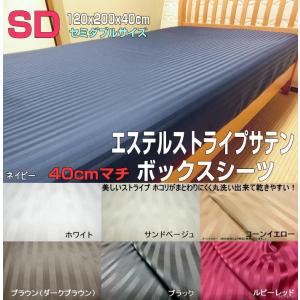40cmマチ ボックスシーツ セミダブル 120x195x40/120x200x40/120x210x40cm エステル・ストライプサテン ポリエステル100% 日本製 洗える 速乾性 ハンドメイド