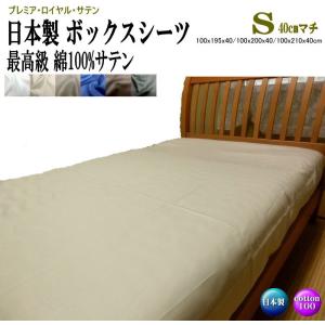 ボックスシーツ 40cmマチ シングル 100x195x40/100x200x40/100x210x40cm 綿100% 日本製 最高級サテン 洗える プレミア・ロイヤル・サテン BOXシーツ