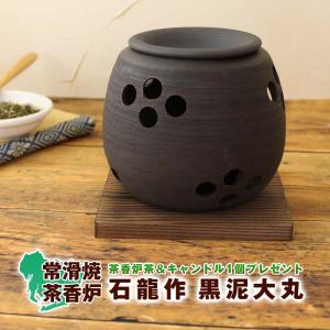 茶香炉 石龍作 黒泥大丸 おしゃれ アロマポット 陶器 キャンドル式 プレゼント 癒しグッズ ルームフレグランス 部屋 消臭 常滑焼