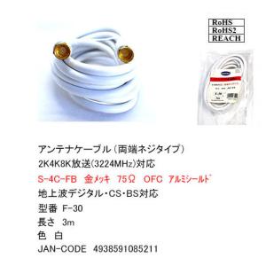 【F-30】アンテナケーブル(白) 3.0m 同軸 S4C-FB 地デジ対応 ネジ式 バルク発送(開封)