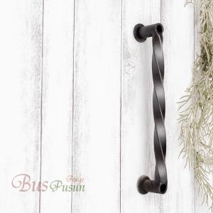 ねじねじツイストのドアハンドル・取っ手・ミニ手すり・バー【ロートアイアン・黒塗装・在庫】228mm・ビス付